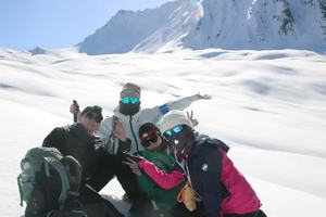 ①必备物品:墨镜、冲锋衣、抓绒、羽绒服、排汗体恤、冲锋裤、一顿路餐、袜子、登山鞋、保温杯、大背包(45L以上)、小背包(30L)、帽子(保暖帽、遮阳帽)、防晒霜、手套、排汗裤